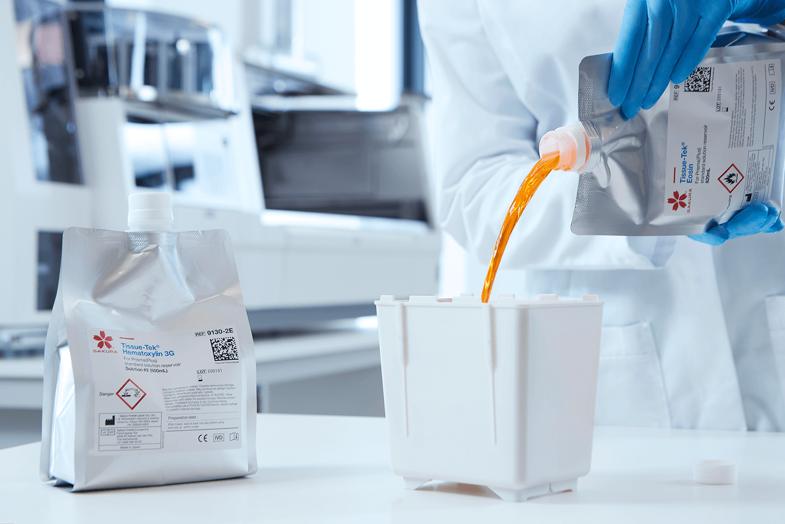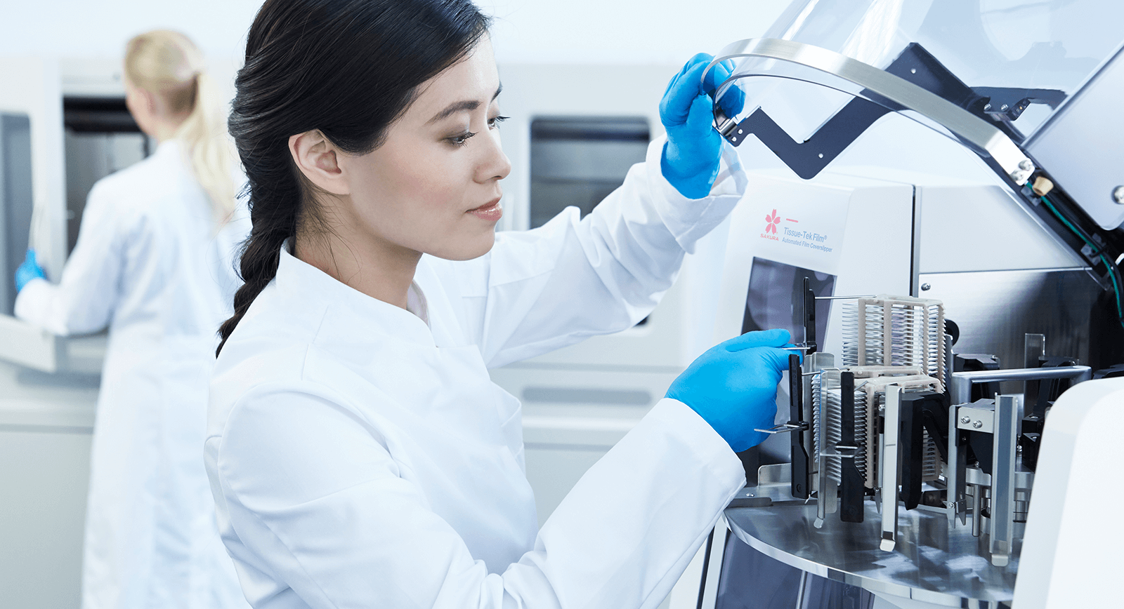 Ofrezca rápidamente portaobjetos de alta calidad y fiables con sistemas integrados de tinción de tejidos y montaje de preparaciones con película cubreobjetos Tissue-Tek Prisma® Plus y Tissue-Tek Film®