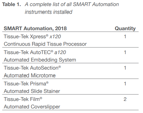 In the recent years, the demand for histopathology services has grown significantly and it continues to grow. The rising cancer cases, increased demand for high-quality results, and increased demand for standardisation have not been in line with the pathology workforce. Therefore, Sakura Finetek designed SMART Automation to automate the laboratory process to enable a continuous flow through the laboratory and to standardise high-quality results. Sakura Finetek conducted a workflow observation in which they measured the rate of productivity at a pathology laboratory both before and after the installation of SMART Automation instruments.