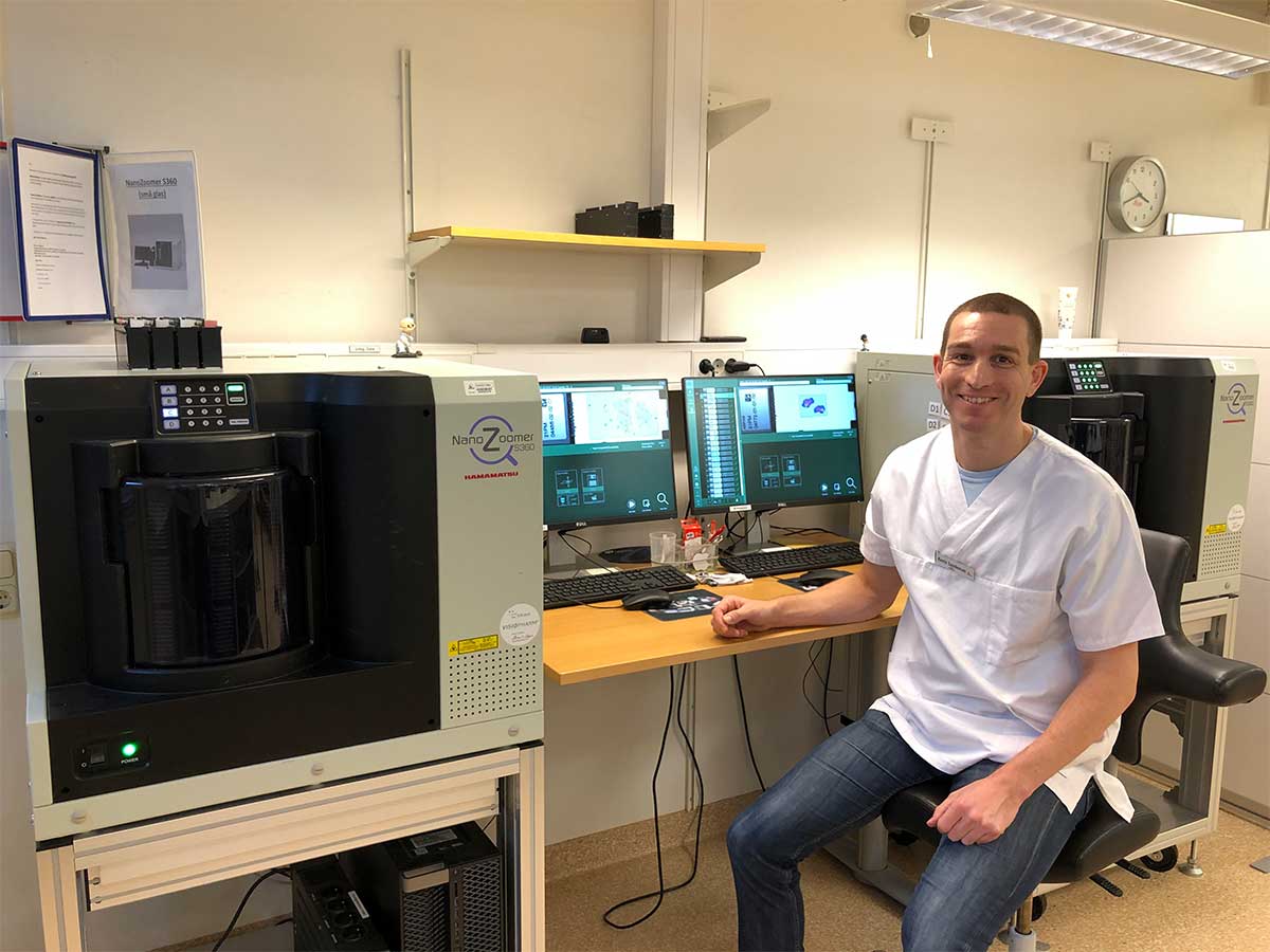 “The NanoZoomer scanners used by the Skåne region are set up to scan the majority of tissue and stains under a single profile.” This creates a smooth workflow with minimal interaction from the laboratory technicians. Dr. Sandeman reports that the training of resident pathologists is now more streamlined with the advantage of communication via annotations on the images. It also allows the specialist pathologist to have an overview of all the training cases.